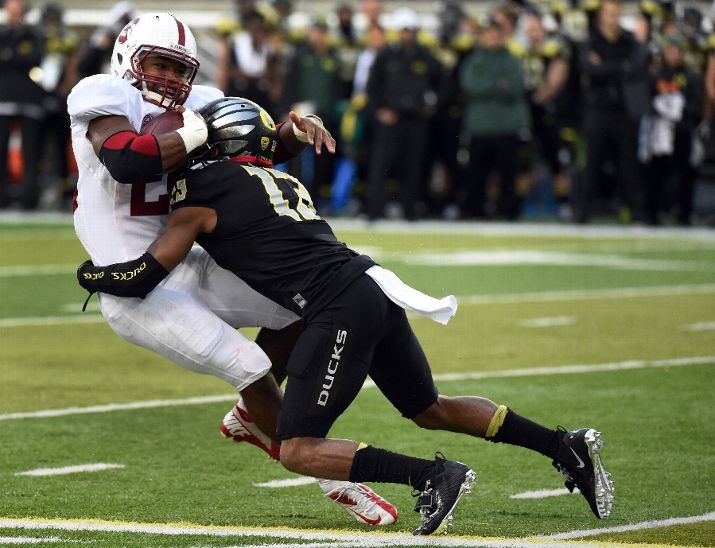 The Cardinals flew to a 21 - 0 lead with the help of a couple of interceptions thrown by Florida State quarterback Jameis Winston, but were unable to hold off the Seminoles in the second half. Overall, Florida State's offense turned in an impressive performance against a stout Louisville defense, coming back to win 42 - 31. With the victory - the Seminoles' 24th straight - they remain one of only a few teams in the driver's seat of the playoff race.2. Oregon beats Stanford by double-digits